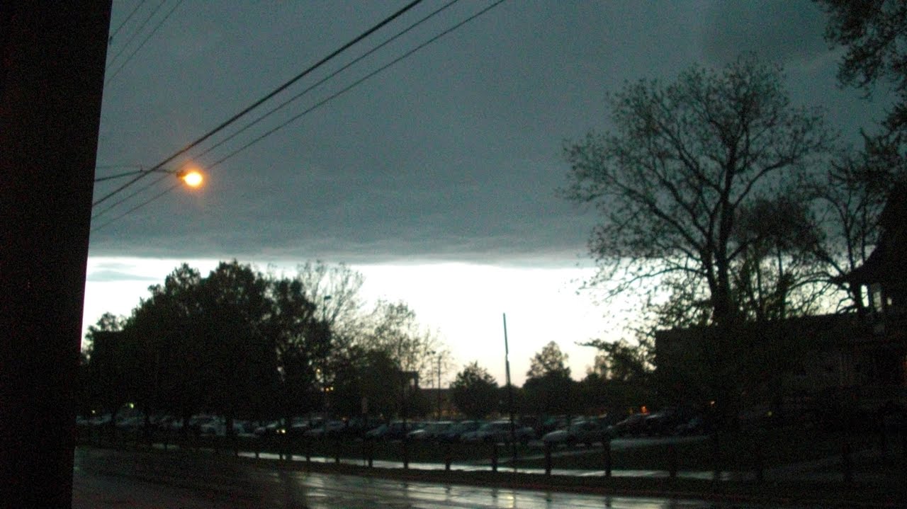 I was going to go outside to get a better one, but that's when the tornado warning went into effect, and the sirens went off and we were all shuffled into the dorm basement. Once the warning was over, I ran over to the bus shelter across from my dorm (it was raining) and got some after pictures, because the difference looking either way was incredible. When I looked to the right I saw this: